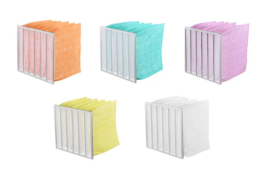 Pocket filters feature large dust-holding capacity, stable air resistance and big filtration area. They effectively capture fine dust and particles, with long service life, greatly reducing the load of rear-end filtration. Widely used in primary and medium-efficiency filtration for large-airflow ventilation systems.